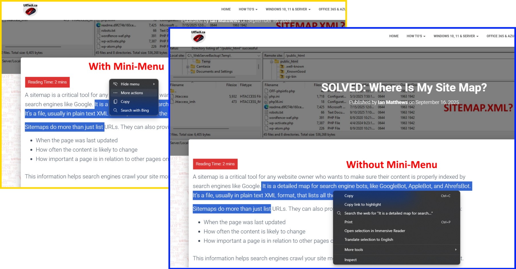 While working on an unrelated Edge browser problem, I ran into settings for the Mini Menu which I had seen before but not had the time to investigate.